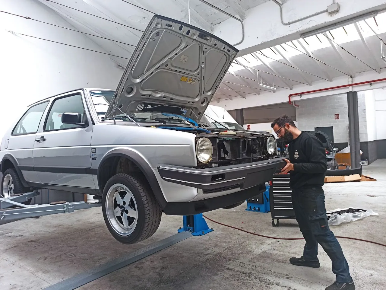 Cambio de paragolpes delantero y trasero. Cuidados y mimos para un clásico elegante e impecable, un claro ejemplo de pasión por el coche.